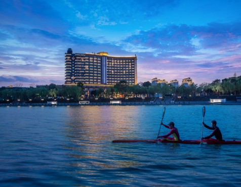 酒店规模宏大,主楼高15层,建筑面积达5万平方米,各种综合服务设施完备,宽阔明亮的酒店大堂、舒适怡人的湖景客房、豪华典雅的中西餐厅、健康时尚的娱乐设施、现代便捷的商务中心、细致周到的精致服务,覆盖酒店所有区域的无线网,将带给您更为便捷的享受。 这里既是休闲娱乐、怡情养性的理想之选,也是宴宾会友、商务会议的绝佳场所。乘坐酒店观景电梯缓缓而上时,放眼望去,湖岸绿柳繁花,远处水天一色,万千气象,尽收眼底,令人心旷神怡。